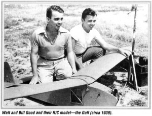 اولین نمونه بسیار ابتدایی رادیو کنترل در شهر نیویورک، در سال ۱۸۹۸ به نمایش درآمد. این دستگاه را نیکولا تسلا به عنوان یکی از ۱۱۳ اختراعش به ثبت رسانید. در پی این تحقیقات ارتش به حمایت مالی تسلا برآمد و او طرحهای تحقیقاتی بسیاری را در زمینه رادیو کنترل و سیستمهای مخابراتی برای ارتش انجام داد. او در اواسط سال ۱۹۳۰ یک هواپیمای کوچک رادیو کنترل ابتدایی با موتور گازوئیلی ساخت. در سال ۱۹۳۶ اولین مسابقه هواپیمای مدل رادیو کنترل برگزار شد که هنوز زود بود. در سال ۱۹۳۷ مسابقات هواپیمای مدل رادیویی ۶ شرکت کننده داشت که فقط یک هواپیما توانست سالم به زمین بنشیند. در سال ۱۹۳۸ یک بار دیگر مسابقات توسط انجمن موتور سیتی آمریکا برگزار شد. این بار تعداد شرکت کنندگان به ۲۶ نفر افزایش یافت. اما فقط ۶ شرکت کننده توانستند قابلیت پرواز هواپیمایشان را به نمایش بگذارند. در مسابقات سال ۱۹۳۹ داوران به عملکرد رادیو کنترل، چه بر روی زمین، چه در پرواز اهمیت بیشتری داده بودند. در این مسابقات برادران گود ( والت و بیل ) با بدست آوردن ۸۹ امتیاز از ۱۰۰ امتیاز مقام اول را بدست آوردند. در حالی که نفر دوم تنها ۱۱ امتیاز را بدست آورده بود. برادران گود قبل از مسابقات ۱۹۳۹ بیش از ۶۰ دستگاه رادیو کنترل را آزمایش و بکار گرفته بودند. آنها بعد از سال ۱۹۴۰ چندین بار مقام اول مسابقات را بدست آوردند و این موفقیتها بعد از جنگ جهانی هم ادامه داشت. تاریخ، تکامل رادیو کنترل و هواپیمای رادیویی را مدیون تلاش و فداکاری بسیار این دو برادر است. هواپیمای موفق آنها به نام گوف هم اکنون در موزه هوافضای واشنگتن نگهداری میشود.